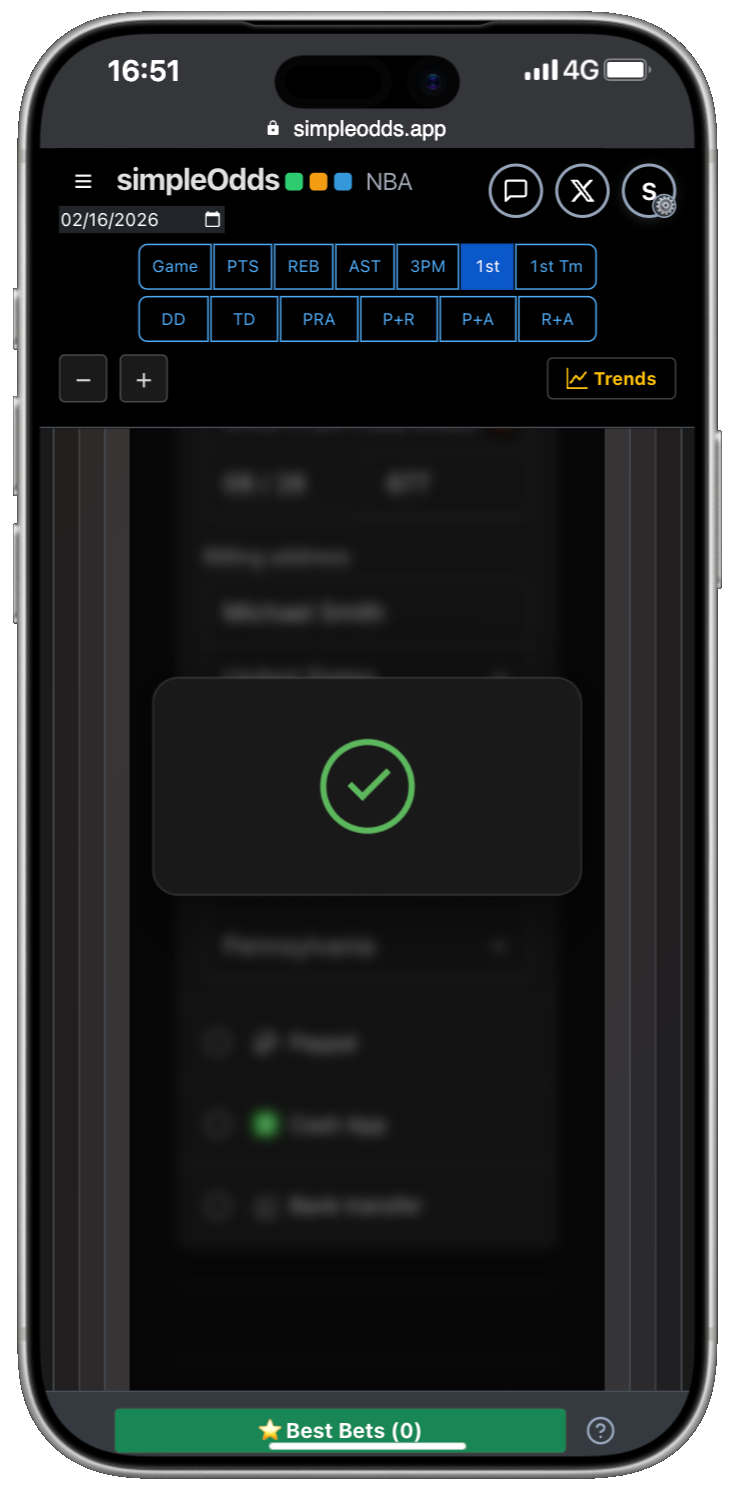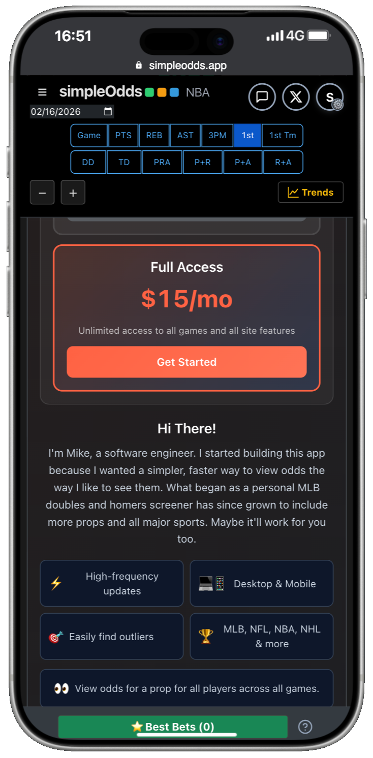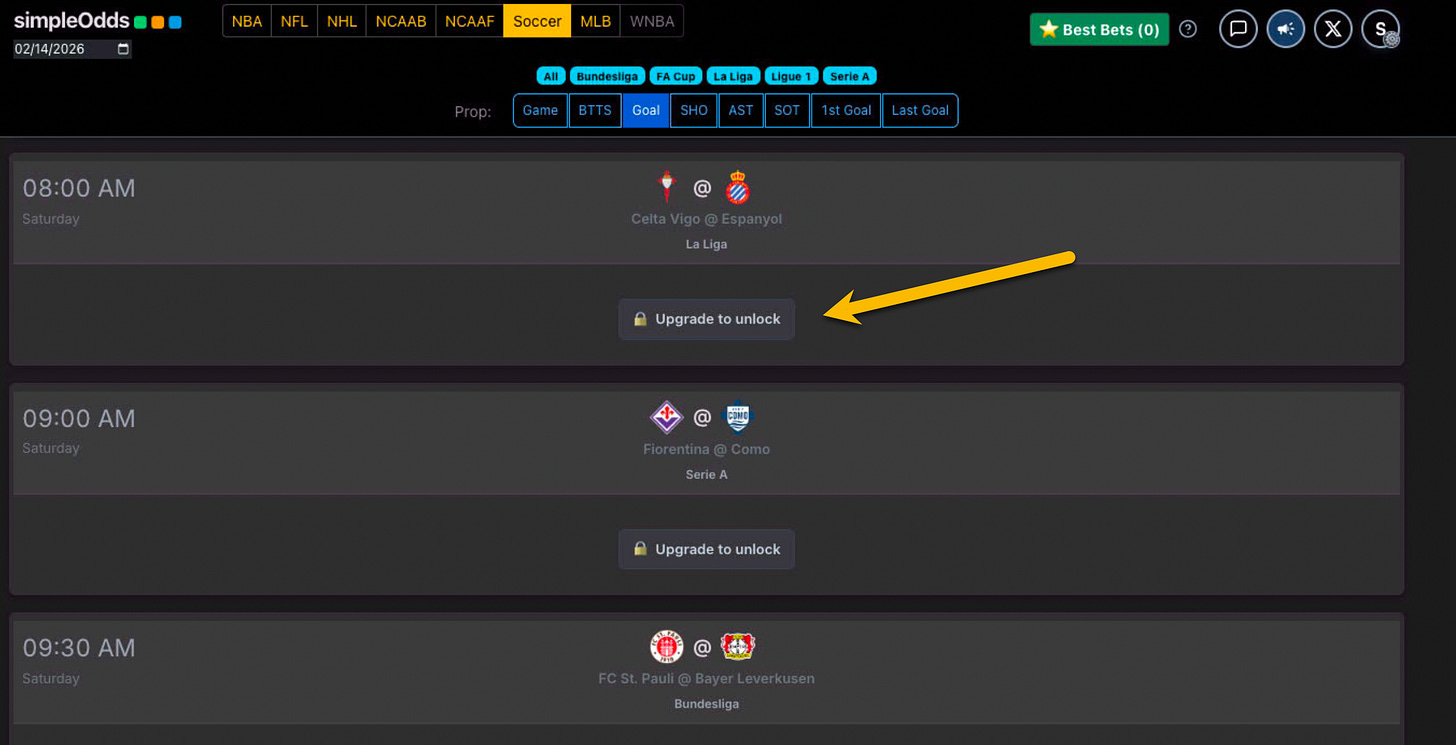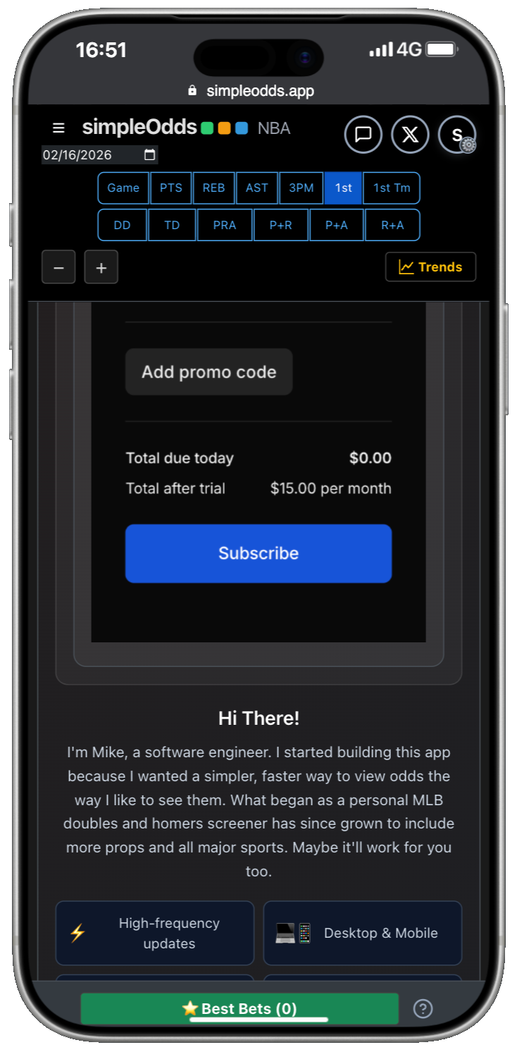 If you are creating a new account, once you have created your Whop account and authorized SimpleOdds to access that account, you are redirected back to the main SimpleOdds screen. To gain access to the odds screen, you need to select one of the available plans: