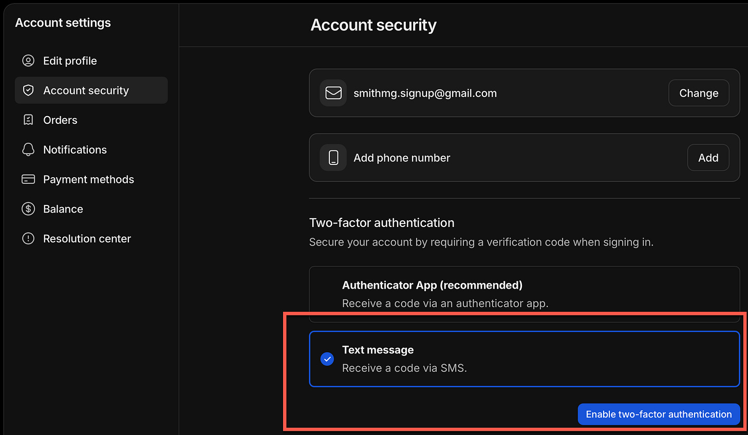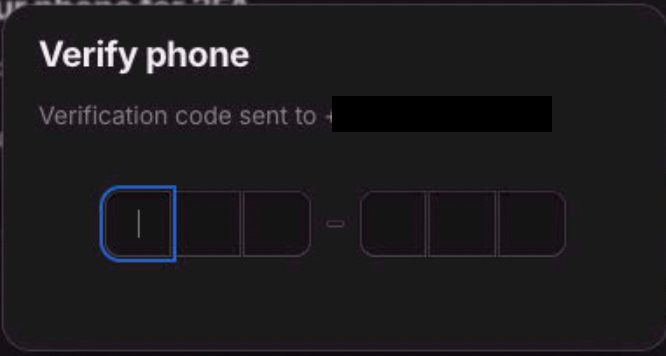 Whop will ask you to confirm your identity by sending a confirmation code to your chosen authentication method.