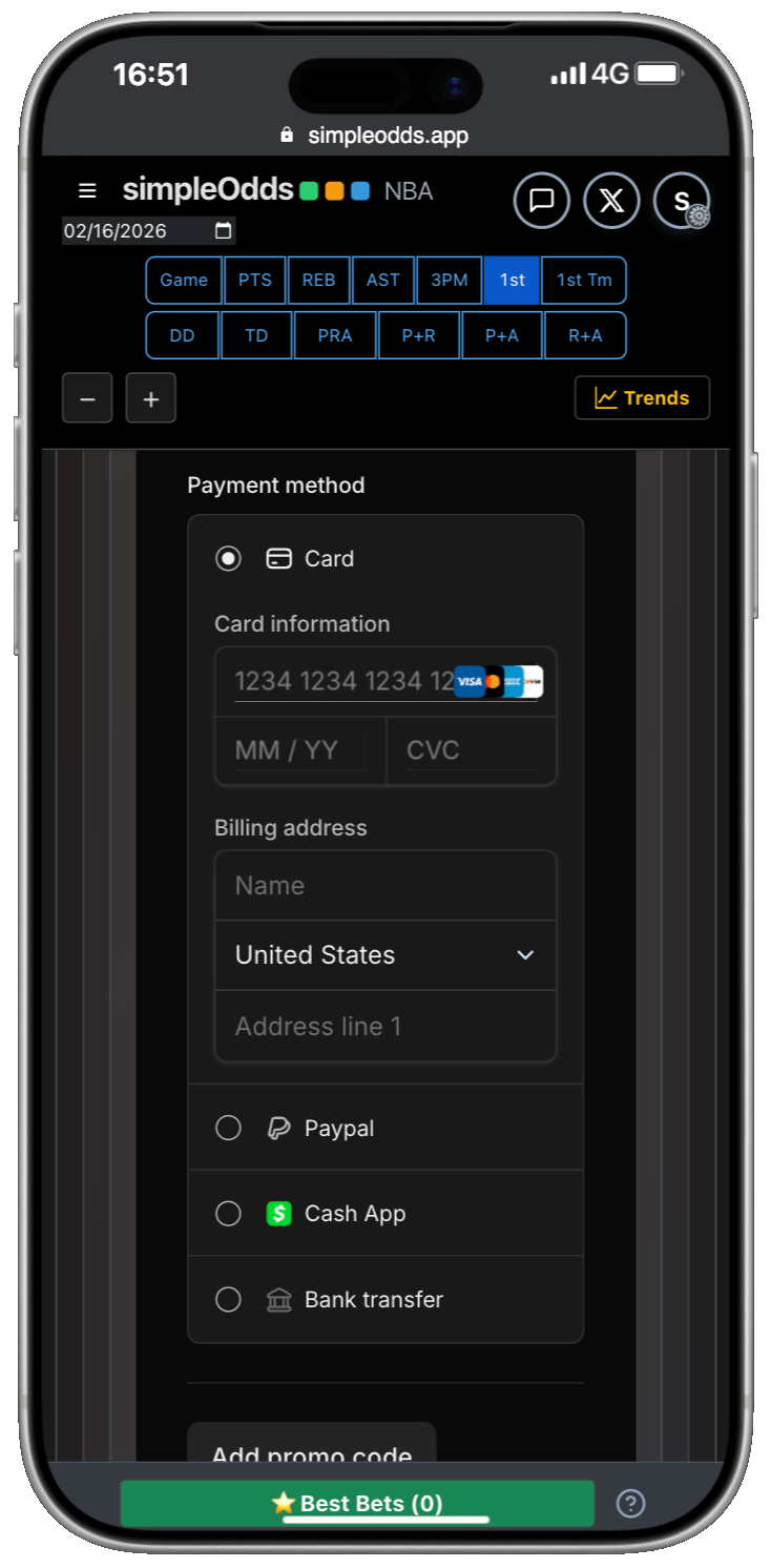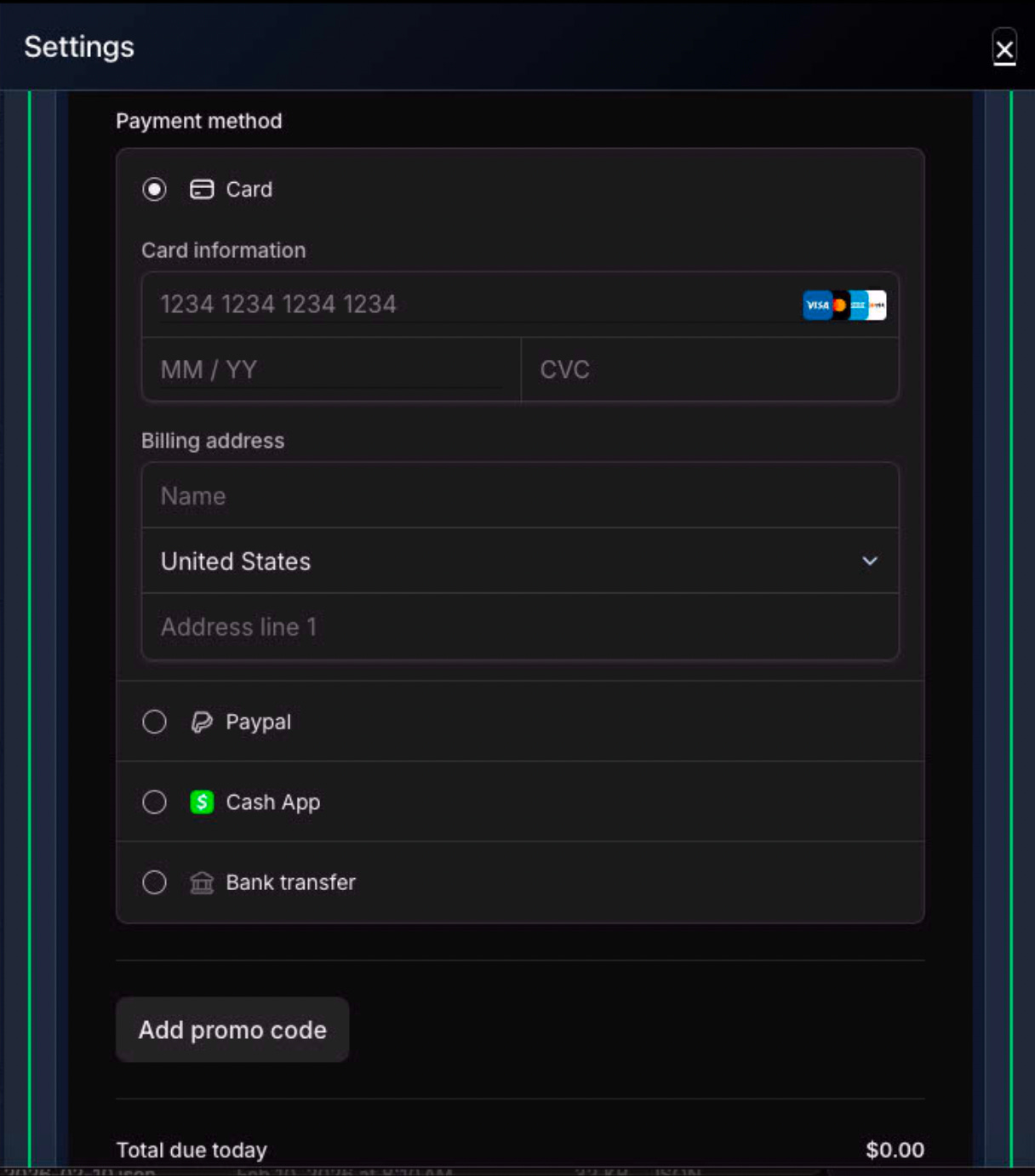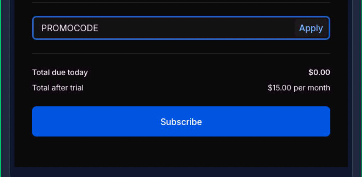 Enter payment info and promo code (if applicable)